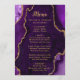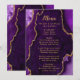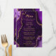 Display your meal selections in style with this elegant wedding menu featuring a purple agate marble design accented with gold details. The geode-inspired background creates a sophisticated look, perfect for fall and winter weddings, formal celebrations, or evening events. Designed to coordinate with your wedding stationery suite, this menu is ideal for presenting courses clearly while adding a luxurious touch to your table setting. The clean typography ensures readability while complementing the agate texture. Easily personalize all text to suit your menu and event details, making it a beautiful choice not only for weddings but also for engagement parties, anniversaries, and other formal occasions.