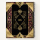 This design features some bold shapes and motifs, in shades of purple and gold on black, that were common in the Art Deco style, such as strong angular and trapezoidal shapes. Art Deco was a popular design style of the 1920s and '30s that featured sleek geometric motifs and stylized forms, often created with man-made or futuristic materials. This style is sometimes called Arts Décoratifs, based on its roots in the Paris Exposition Internationale des Art Decoratifs et Industriels et Modernes in 1925. Please note that this design might appear to have depth, with recesses or bevels, but it's just a flat design.