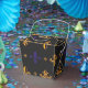 Black take out-style favor box with an image of purple and gold fleurs de lis. See the entire Mardi Gras Favor Box collection in the PARTY FAVORS section.
