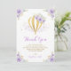 Purple and Gold Floral Hot Air Balloon Baby Shower Thank You Card