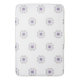 A fractal art design in purple and gold is tiled across this bath mat. The design has a floral look. The background is white. Matching bathroom accessories are available.