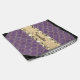 A stylish gold foil mermaid pattern on a purple backdrop with a glittery gold ribbon adorned with sparkly gold diamonds where you can personalize it to make it your own. Glam chic vibes.