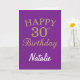 Purple and Gold Glitter 30th Birthday Card with personalized name. For further customization, please click the "Customize it" button and use our design tool to modify this template.