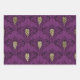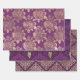 Purple and Gold Paris themed wrapping paper in three different styles including ornate ironwork, roses, and grapes.
