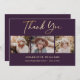 Express your gratitude to your family and friends for sharing in your special day with this purple and gold photo graduation thank you card featuring a photo collage and a modern script font on the front.