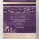 Purple and Gold Rustic String Lights Wedding All In One Invitation