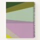Modern geometric color blocking with diagonal lines and triangles in lilac purple and mint green, personalized with your name in script lettering.