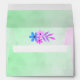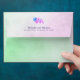 Purple and green gradient parchment floral design showcases a purple and green parchment color on the envelope with a blue and purple flower on the inside flap as well as the back flap. Address information can also be written on the back flap, purchase yours today!