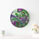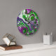 Purple and Green Marble Fluid Art Large Clock