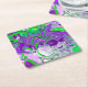 Purple and Lime Green Marble Fluid Art Square Paper Coaster