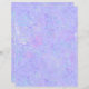 A gorgeous design of metallic-looking pink, purple and turquoise flakes on a purple background.