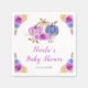Rustic baby shower napkin with dark purple and navy blue pumpkins and floral flower arrangements. Perfect for an autumn fall baby shower. The words can be changed to suit your own details or requirements