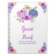 Rustic baby shower guest book with dark purple and navy blue and floral flower arrangements. Perfect for an autumn fall baby shower. The words can be changed to suit your own details or requirements