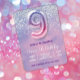 Purple and Pink 9th Birthday Balloon Invitation