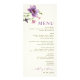 Purple and pink flowers watercolor style spring wedding budget menu card. This budget-friendly menu card showcases a beautiful watercolor floral arrangement of a purple anemone-like flower, accented by pink flower, leaves and a butterfly at the top left corner. A solid purple color provides a simple, elegant finish on the back.