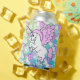 Cute White Unicorn with Pink hair and wings with a pattern of Unicorn background in gradient blue. Fully customizable. The Big Unicorn can be moved around and resized.
