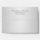 This purple and silver A7 envelope matches the wedding invitation shown below and is designed to fit the 5x7 invitation. Customize it to have your own return address on it.