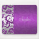 This elegant looking purple and silver damask mousepad has a spot for your name, monogram, or other text.