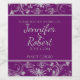 This beautiful and elegant wedding design, called Purple and Silver Floral Scroll, has a purple plum background with silver grey floral scroll accents. A very modern feel with a timeless touch. This set has invitations, save the date cards, response cards, thank you cards, table number tent cards, envelope seals, wine labels, binders, return address labels and many more day-of wedding stationery pieces, favors, and gifts available. Use the envelope seal stickers for any of your DIY gifts - these are available in both large and small sizes! All elements are printed on our high quality products, they do not include any real gold, jewels, embossing, or other textile elements. All designs are copyright Noteable Expressions, Inc. All rights reserved.