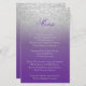 Dinner / Lunch Menu. Modern Wedding Day Purple and Silver Glitter. Matching products available - 📌If you need further customization, please click the "Click to Customize further" or "Customize or Edit Design"button and use our design tool to resize, rotate, change text color, add text and so much more.⭐This Product is 100% Customizable. Graphics and / or text can be added, deleted, moved, resized, changed around, rotated, etc... ⭐99% of my designs in my store are done in layers. This makes it easy for you to resize and move the graphics and text around so that it will fit each product perfectly. 📌 (Please be sure to resize or move graphics if needed before ordering) You can also "TRANSFER DESIGN" on other Zazzle products and adjust the design to fit most of Zazzle items. (button is down on the right side of the page) This design is made with high resolution vector and/or digital graphics for a professional print. 📌NOTE: (THIS IS A PRINT. All Zazzle product designs are "prints" unless otherwise stated under "About This Product" on the left side of this page) The design will be printed "EXACTLY" like you see it on the screen and on the product...so please make sure when you do your changes on the resizing of any of the graphics or text that it fits in the areas correctly and that your spelling and wording is how you like it to be in size, color and font. If you have any questions about the "DESIGN ONLY" or need help please contact me at ✉ siggyscott@comcast.net or visit my store link: https://www.zazzle.com/store/designsbydonnasiggy (Copy and Paste) I'll be happy to help. 📌 ALL OTHER QUESTIONS (shipping, refund, the printing is not correct, the product itself, etc...) please contact Zazzle or the Maker ⭐DIRECTLY⭐. Thank you for the support and stopping by my store - DesignsbyDonnaSiggy. © Donna Siegrist⭐⭐⭐ ZAZZLE promises 100% satisfaction. If you don't absolutely love it, Zazzle will take it back! ⭐⭐⭐ 1-888-8ZAZZLE (1-888-892-9953) Phone hours: Mon - Fri: 9AM - 5PM PT (12PM - 8PM ET)