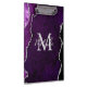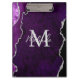 This clipboard features an elegant and glamorous agate marble background with geode gemstone detailing and faux silver glitter accents. The monogram combines handwritten script and modern sans serif fonts for a classy and sophisticated look. This will make the ideal gift as it can be customized with a name and initial. The deep purple hues make it perfect for autumn fall and winter.