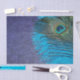 Lovely still life photography of a peacock feather with a teal ostrich feather accenting it. Against the purple background this looks so amazing.