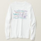 I love this shirt. I had written to the artist asking her if this picture was available on a shirt, and she wrote me back telling me where I could find the shirt. These shirts can be custom made to have a different saying. I loved this saying and went with it. The artist wrote me back later to tell me that she had seen my order go through. How's that for service? Pretty special. It's just as displayed. Perfect!