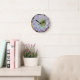 Purple and White Cactus Flower Round Clock