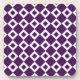 A bold, graphic pattern of interlocking purple and white diamond shapes. The white diamonds each contain a small dark purple diamond making purple the dominant color of the geometric design.
