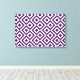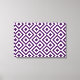 This bold, geometric, regal purple and white pattern is an original ornamental design. Purple diamonds with white borders are surrounded by royal purple meanders which angle around them. White zigzags separate the winding purple paths and offset diamonds.