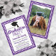 You can pick to download your Purple And White Photo Graduation Party Invitation from 4 file types: PNG, JPG, Standard PDF, and Print PDF. These 4 file formats have been selected so they cover all your inviting needs. PNG and JPG are great for sending your invitation digitally and PDF and Print PDF are great if you want to print your invitation yourself.