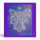 Painting of a silver angel on a purple and blue background. Change the purple background and customize the binder by adding your own text.