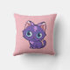 Purple Anime Cat Vector Art Pink Throw Pillow