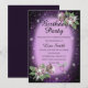 Purple Any Age Bling Floral Bird Birthday Invitation