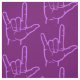 Add a Sign Language touch to your sewing project with this great Fabric featuring several Purple ASL I Love You Hands. Skirts, Shirts, Pillows, Quilts, and more. From our Sign Language Fabric Collection.