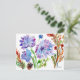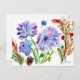 Watercolor, colored pencil and ink drawing of purple asters in a style reminiscent of botanical prints. These drawings are fun and imaginative. They reproduce beautifully on cards and other printed stationery.
