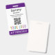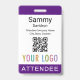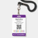 Personalize our professional attendee badge with your logo, attendee name, and other custom text. It's pvc plastic and available with a lanyard, clip, or a retractable reel. Designed in dark purple and other colors with a modern minimalist design by MISOOK. All colors are customizable. You can optionally add content to the back side. Easily customize the attendee title (VIP guest, visitor, speaker, etc). No minimum order quantity and no setup fee.