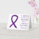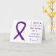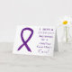 The greeting or note card features the picture of a purple awareness ribbon painting. The card states "I Hope & Support Awareness for a <Add Your Cause Here> Cure!" Add your own optional words or message to the greeting card for personalized angel art cause awareness notecards! You can also remove the text for an art only note cards. A purple awareness ribbon color means support for Pancreatic Cancer, Crohn's Disease and Colitis, Alzheimer's Disease, Anti-Gay Bullying (Spirit Day), Cancer Survivor (All Kinds), Domestic Violence, Lupus, Sjögren's Syndrome, Chronic Pain, Leiomyosarcoma, Arnold-Chiari Malformation, Migraines, Cystic Fibrosis, Retinitis Pigmentosa, and Fibromyalgia. Let this purple awareness ribbon support these causes! The purple awareness ribbon painting art greeting cards can be customized with personalized messages to make great awareness cause art cards for fundraisers, awareness gifts, or other special events. Give this art card as an awareness ribbon gift for any occasion.