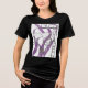 Fun, bold, and trendy De-Loop Purple awareness ribbon. front of T-shirt purple ribbon with glasses, gold neck choker, and large gold earrings. Back of T-shirt has long lavender boots. Purple ribbon meanings: Alzheimer's, Lupus, cancer survivor, or used from American Cancer Society, Hodgkin's disease, testicular cancer, and lot's more.