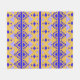 Purple and gold aztec inspired tribal pattern with geometric triangles shapes.