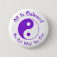 All Is Balanced - You Get What You Give - white button pin with purple lettering and yin yang symbol.