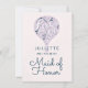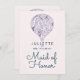 Hand Lettered Love Lavender Pastel Purple Hot Air Balloon, with Love is in the air hand drawn text, cute balloon, hearts, swirls, doodles, and fun fonts. Background color can be customized to any of your choosing, just click the customize further link. Perfect for a Spring or Summer wedding - Personalized Wedding Will you be my Maid of Honor proposal card!