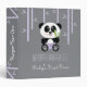 A cute and kawaii baby panda bear holds a green bamboo shoot as it sits happily in the middle of a light purple bamboo forest. It wears a pair of lavender hued diapers held together by a diaper pin. These adorable pastel and gray gender neutral my first year baby photo album binder is perfect as a panda or Asian themed new baby gift for the new mommy to be expecting or adopting a baby boy or baby girl. The front, side and back of this album can be personalized with the baby's name and customized to say whatever you want. Artwork © Chrissy H. Studios, LLC. All Rights Reserved.