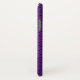 Custom basketball fan iPhone case, with graphics of a purple sports jersey pattern background. Graphics of a basket ball decorates the bottom of the case and custom yellow text, on the left side, is ready to personalize. Great case for the sports fan or basketball player.