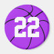 Purple Basketball Custom Jersey Number Round Fridge Magnet: Make your own customized purple basketball fridge magnets by typing in your own jersey number or any other text such as a team name or initials, player name or initials, school letters, etc. You can also delete the placeholder text and leave it blank for a simple purple basketball design. These work great as affordable team gifts for players, coaches and fans of basketball teams with purple team colors – discounts are available for bulk orders. They can also be used as senior gifts for your high school or college basketball seniors, or just as a unique birthday or Christmas gift for bball fanatics.