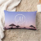 Purple beach sky sunset photo monogram script bold lumbar pillow