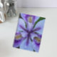 A personal sized, spiral bound notebook that features the cover photo image of a light purple, beardless Iris bloom with splashes of yellow and raindrops on its petals. A lovely, floral design! Use as a journal or for taking notes.