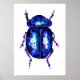 a traditional watercolor painting of a blue and purple colored beetle as a decorative poster print.