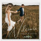 Monogram with purple pink berries and muted green leaves on white wedding table plan on one side and a photo welcome sign on the other. This table chart plan is a 20 table layout featuring to instant photo holders for your own couples photo and monogram initial. Perfect for a simple autumn fall or winter wedding or couple celebration sit down event. Flip it over to welcome in your guest or hang so you can see both sides. Edit with your own bride and groom's names, and wedding date or other event details and one photo on the welcome side. Other matching items are available. Original hand watercolor half wreath foliage painting and design by Sarah Trett for www.mylittleedenweddings.com