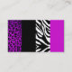 Purple & Black Animal Print Zebra and Leopard Business Card